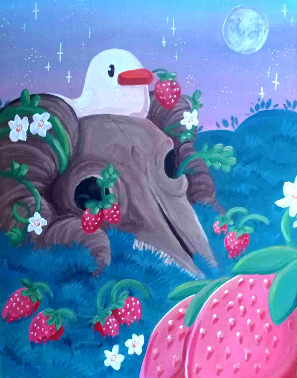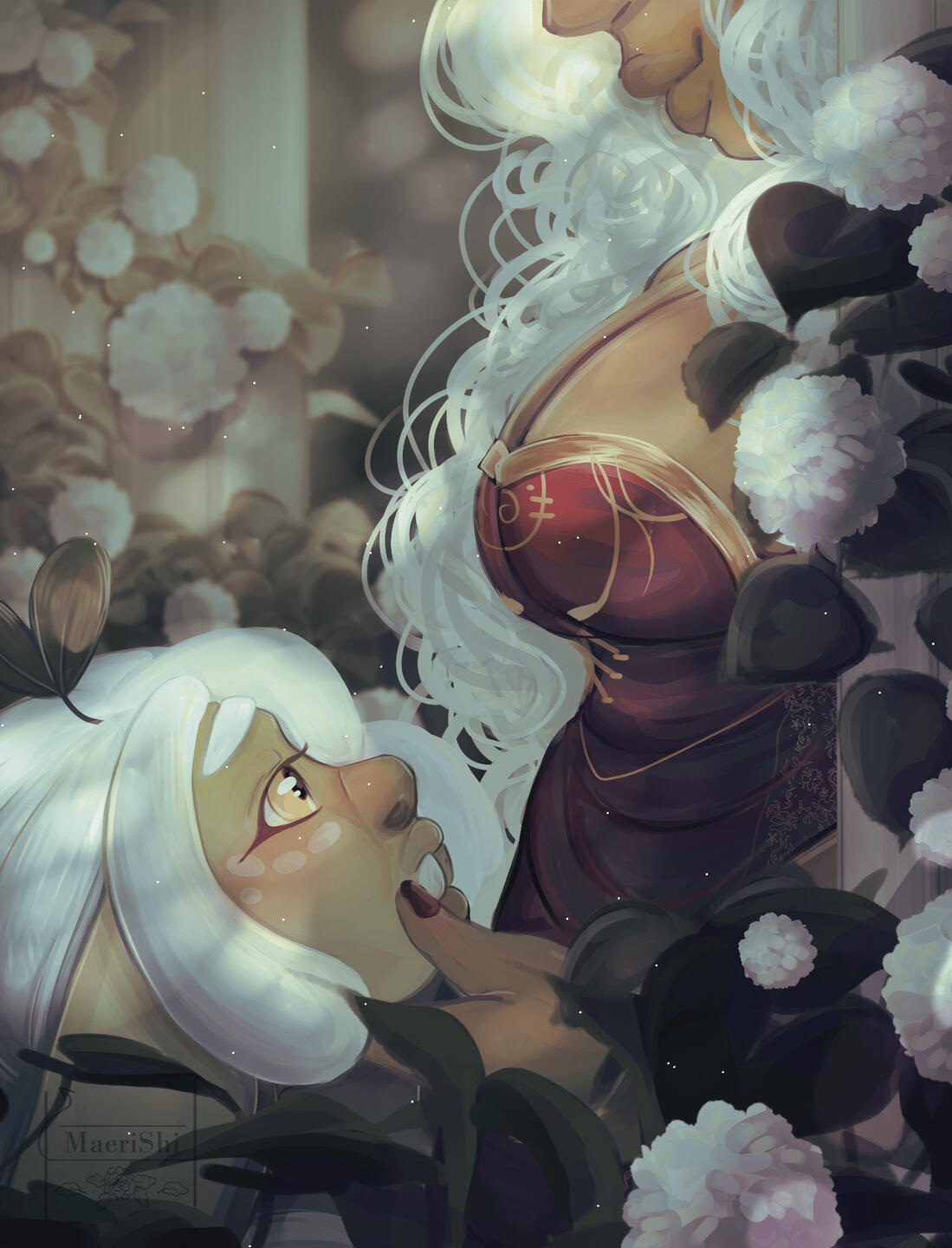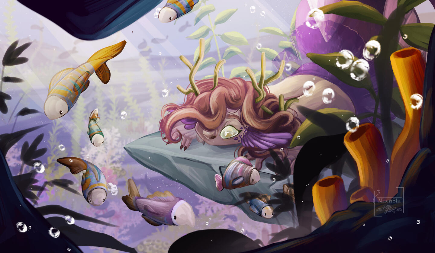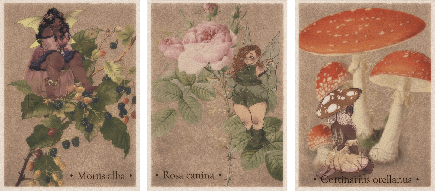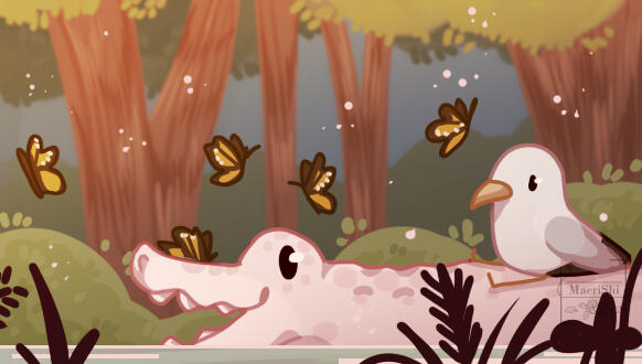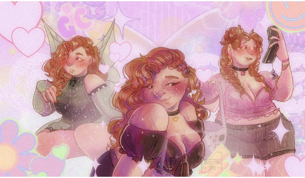 I usualy draw plumpy woman and I try to include as much diversity as I can.My style goes from a very painterly style, with lots of textures, detail and more drastic shading, up to very simple rendered drawings with a flat-looking result. I draw mostly nature sceneries, since there are very fun to explore ♥