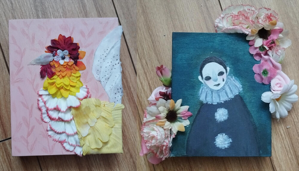 The work featured here are my traditional artwork and also my university work. There is a mixture of painting, sculpting, drawings and mixed media pieces.Bugs, flowers and pretty ladies are pretty much everywhere in my work.